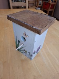 The bird box has been made in the art sessions where similar items have been displayed in the centre’s gallery.